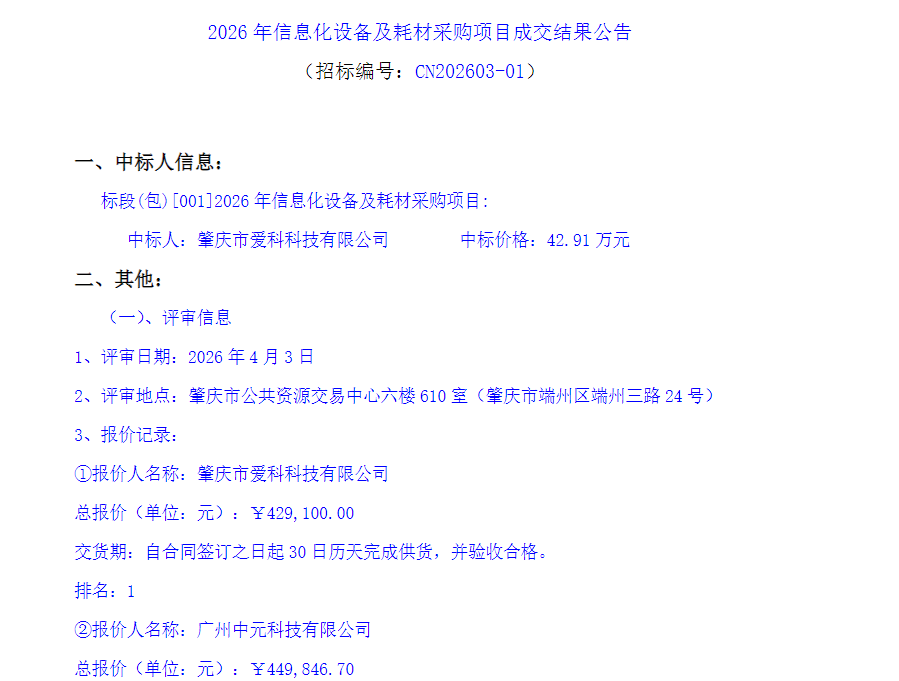 中标结果
